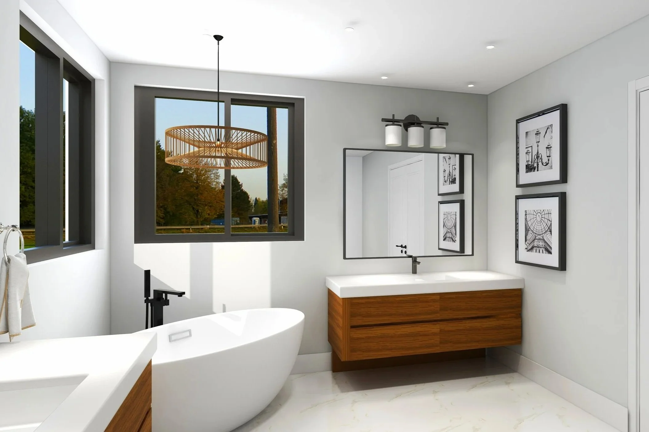 We start by taking detailed measurements of the space and developing a scaled floor plan. From there, we build a digital model of the rooms, placing walls, windows, doors, and structural features exactly as they are. Next, we layer in the design elements—cabinetry, finishes, flooring, lighting, and furnishings—so that every detail is represented. Finally, we apply realistic textures, colors, and natural lighting to produce photorealistic images that look and feel like the finished space.